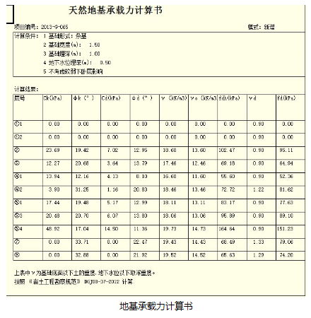 12)天然基礎(chǔ)沉降計(jì)算,依據(jù)規(guī)范計(jì)算天然基礎(chǔ)沉降、地基承載力設(shè)計(jì)值等。