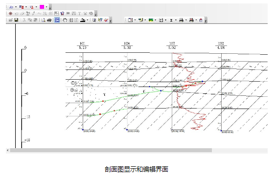 7)剖面圖,可生成工程地質(zhì)剖面圖,內(nèi)容包括鉆探數(shù)據(jù),靜探曲線,標(biāo)高示意等;簡(jiǎn)易的編輯功能能夠處理各種復(fù)雜地質(zhì)情況,如地層尖滅、侵入巖體、復(fù)雜構(gòu)造等特殊的地質(zhì)情況。